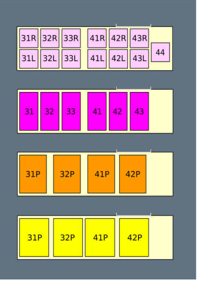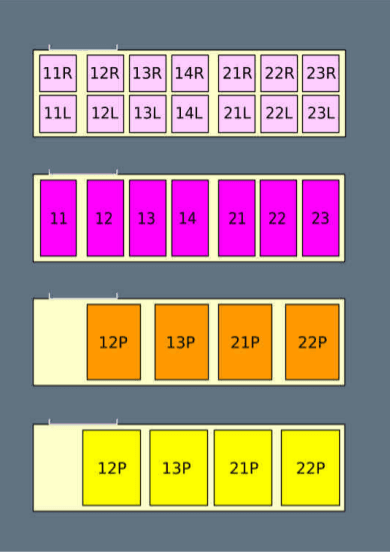 Forward lower deck layouts: | |